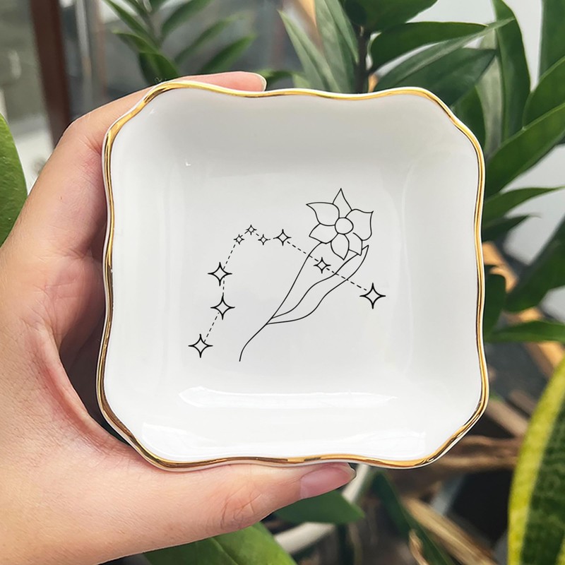 BAT TRANG Zodiac Jewelry Dish, Aquarius Trinket Tray, Horoscope Ring Holder, Minimalist Zodiac Ring Dish, Zodiac Sign Gift, Birthday Gift Ideas