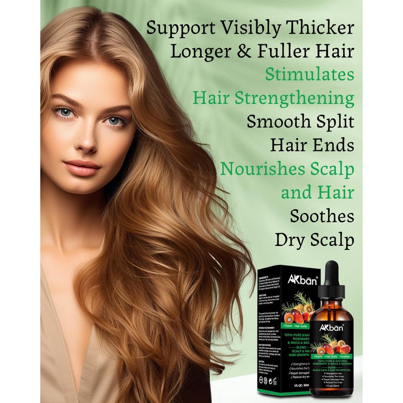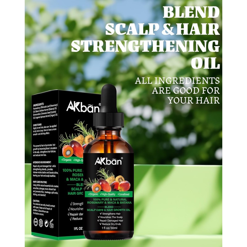 AKBAN Batana Oil for Hair Growth, with Rosemary Oil Maca Argan Jojoba Oil, Promotes Hair Thickness, Nourish Scalp and Hair for All Hair Tapes | Glass Bottle with Dropper | 1fl oz + 1 fl oz