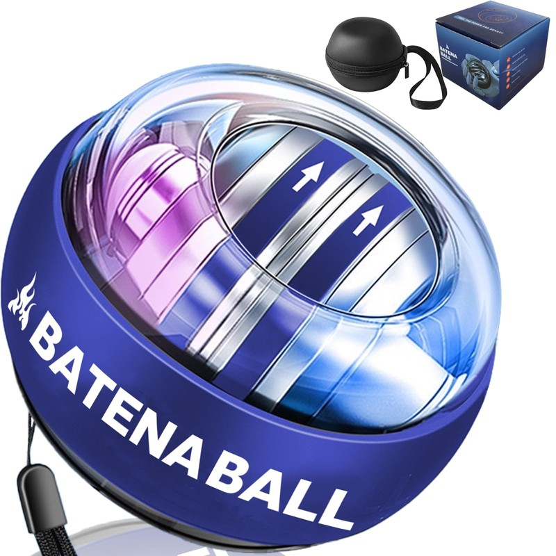 BATENA Muscle Training, Power Ball, Auto Start Function, Forearm, Grip Strength, Training, LED Luminous, Snap Ball, Wrist Strap, Storage Case Included, Grip (Blue)