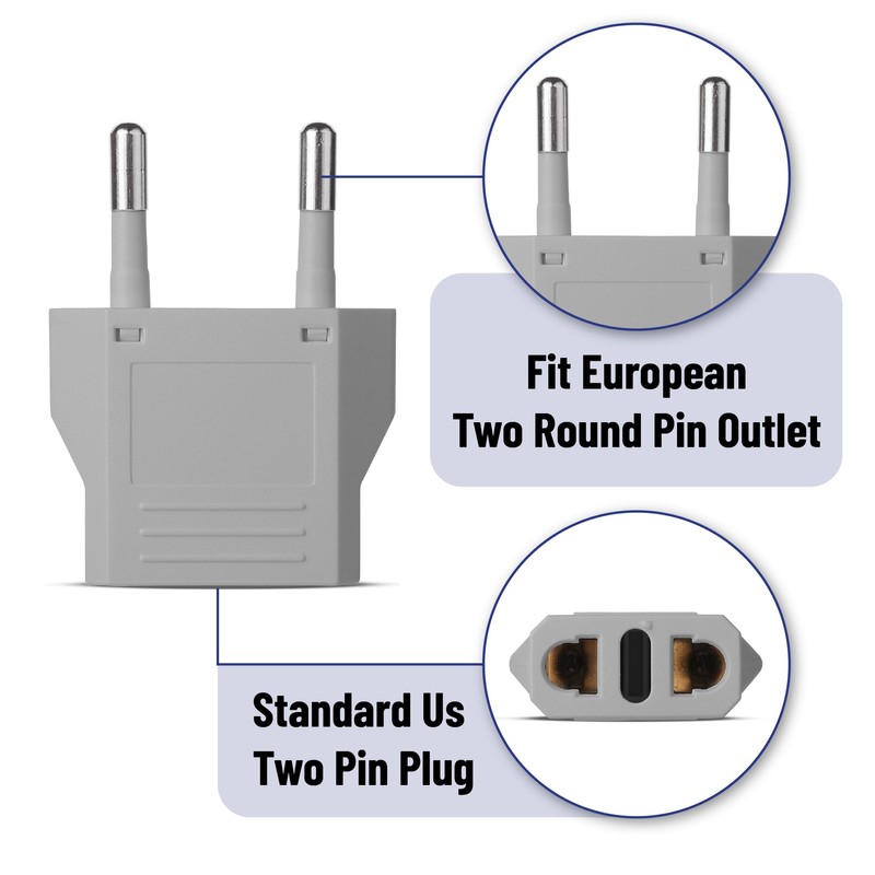 - Designed to convert US plugs to European outlets, their compact and lightweight design makes them easy to pack and carry, perfect for any travel adventure.