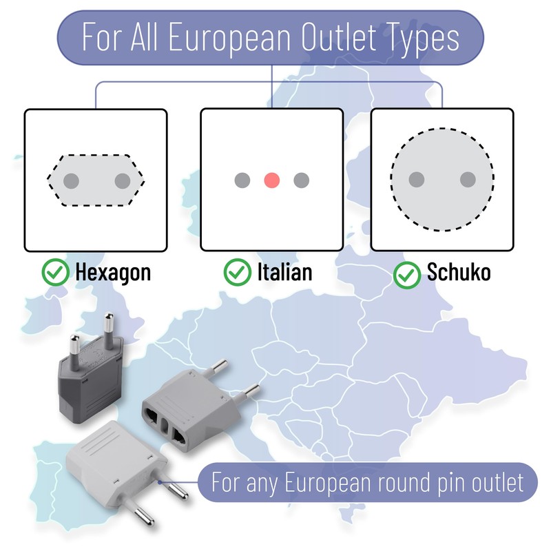 - Suitable for charging phones, laptops, cameras, and other devices, these plug adapters are a must-have for seamless connectivity during your European trips.