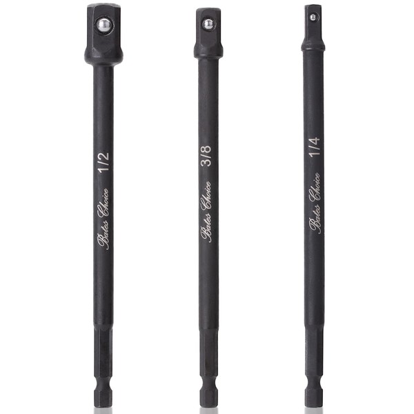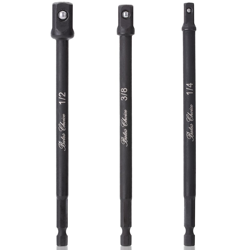 Bates- Impact Socket Adapter Set, 3 pcs, 6-Inch, 1/4", 3/8" and 1/2", Drill Socket Adapter for Drill, Hex Shank Impact Driver Socket Adapter, Impact Adapter Set