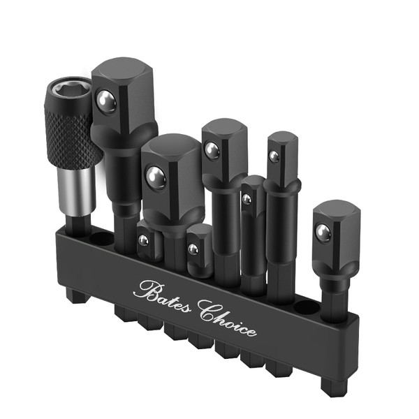 Bates- Impact Socket Adapter Set, 9 pcs, 1/4" 3/8" 1/2", Magnetic Bit Holder, 1/4" Hex Shank, Impact Drill Socket Set for Drill, 3/8 Adapter for Impact Driver Socket Set, Impact Driver Socket Adapter