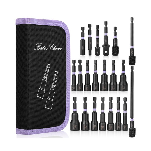 Bates- Magnetic Nut Driver Set, 21 pcs, 1/4" Hex Shank, Impact Socket Adapters, Metric and SAE Nut Driver, Quick-Release, Magnetic Nut Driver Set for Impact Drill Socket Set, Impact Driver Socket Set