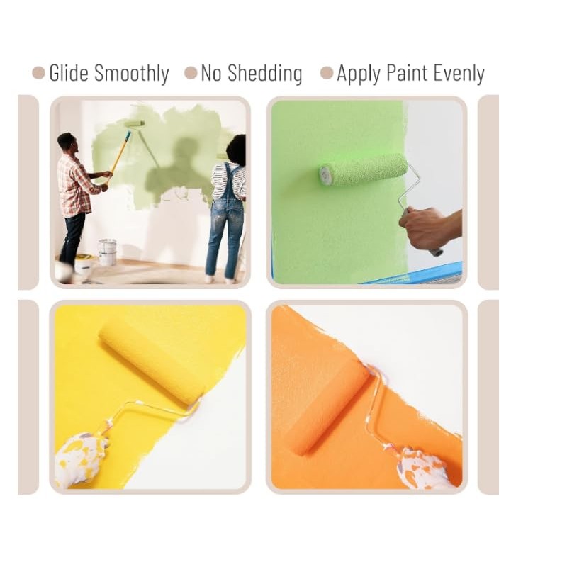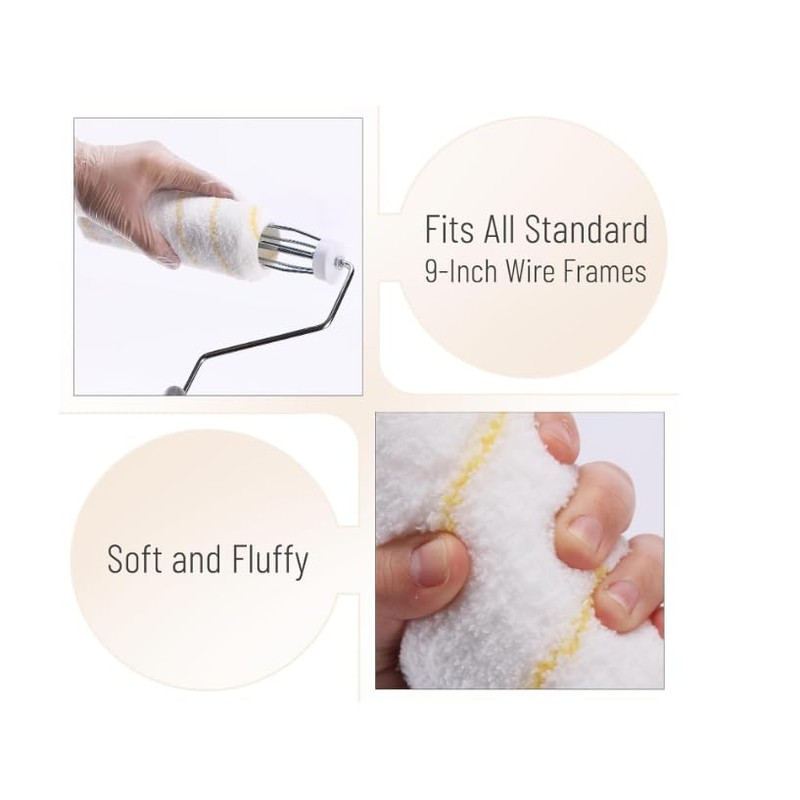- This set comes with 2 roller frames, 2 roller covers (9" size), 2 roller covers (4" size), and 1 high-density foam brush, perfect for various painting projects.