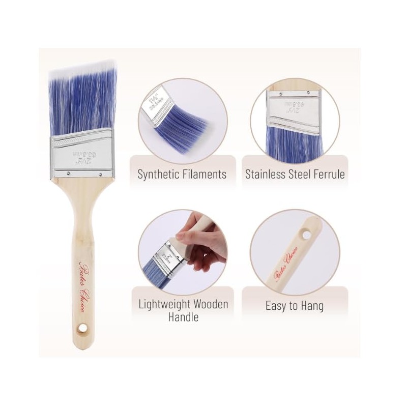 - Also included is a 2" angled paintbrush, ideal for cutting in edges and tight spaces, ensuring precise and detailed paint application.