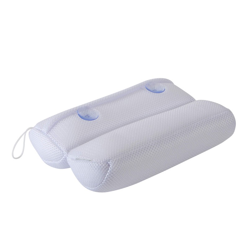 Bath Bliss, Suction Cups, Powerful Gripping, Machine Washable, Spa Experience, Breathable Ultra Comfort Dual Chamber Bath Pillow, 11"x 7.5"x 2.75", White
