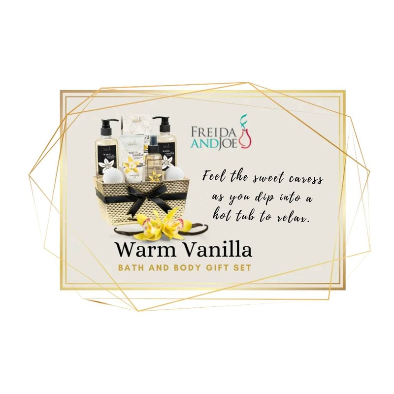 Bath, Body, and Spa Kit Christmas Gifts for Women in Warm Vanilla Aromatherapy Fragrance – 8 Piece Gift Spa Basket