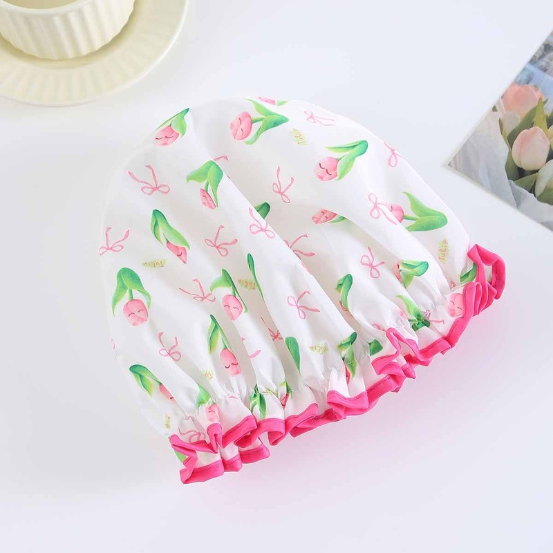 Bath Caps Elastic Band Waterproof Shower Caps With Ruffled Edge Covering Ears Keeping Hair Dry Kitchen Oil-proof Cap for Girls and Women (Floral)