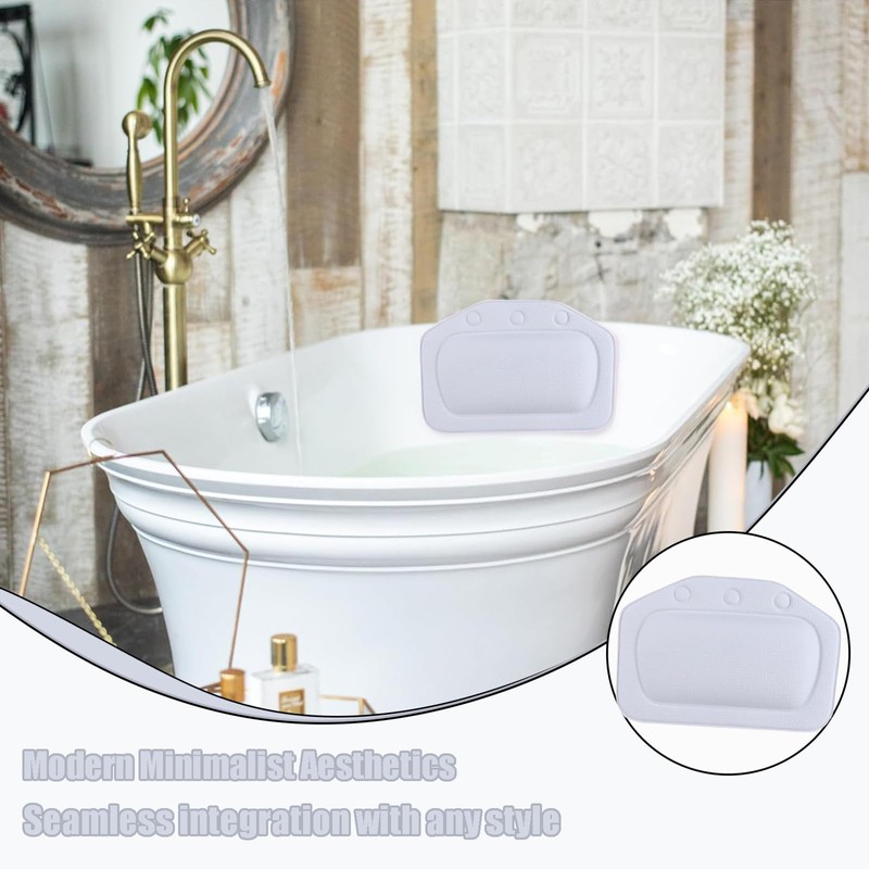 Bath Pillow With 3 Strong Suction Cups, Soft Waterproof Bathroom Pillow for Tub, Relaxing Bathtub Pillow for Neck and Back Support Modern Minimalist Design Durable Bath Accessories