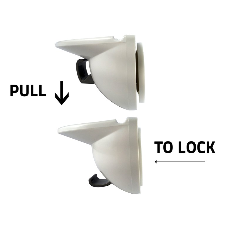 - EASY INSTALL – No tools required. Clean surface, place holder, and pull on spring loaded hanger handle to engage strong suction.