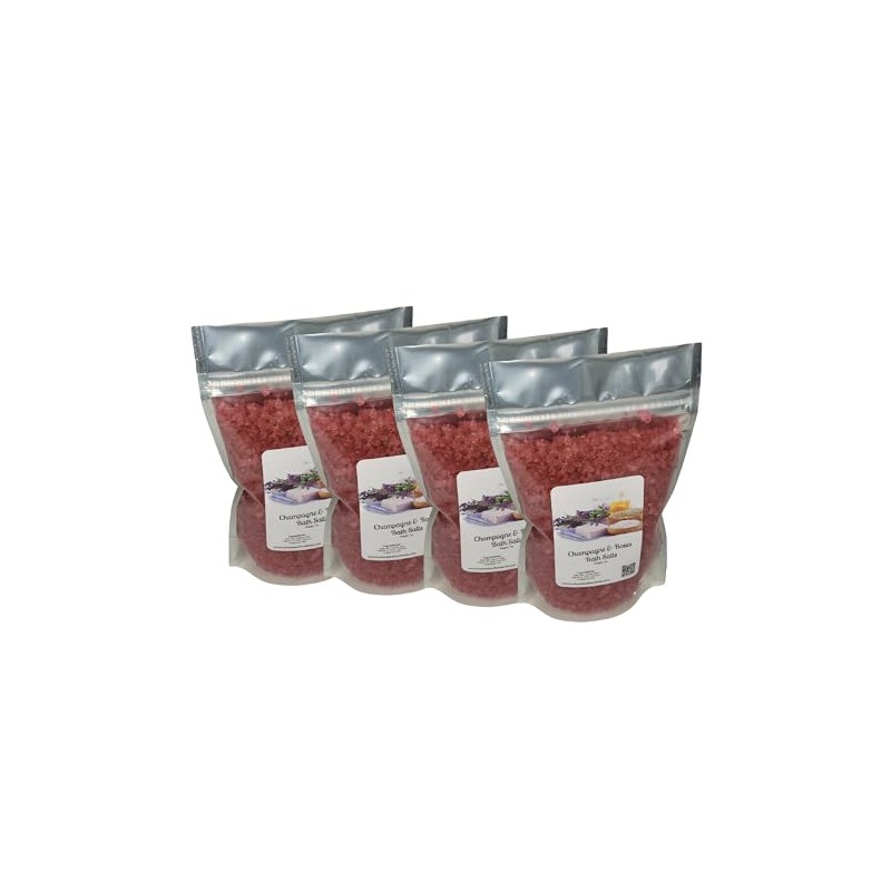 Bath Salts | 1lb Bags | Champagne & Roses Scent | Bathing | Body Care | Beauty | Relaxation | Spa ((4) 1lb Bags)
