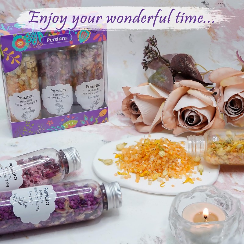 Bath Salts Gift Set - Relaxing Aromatherapy Spa Set for Women, 120g Self-Care Gifts for Mom, Bath Saok,Birthday Gifts with Natural Sea Salts,4.2 Oz, Pack of 3