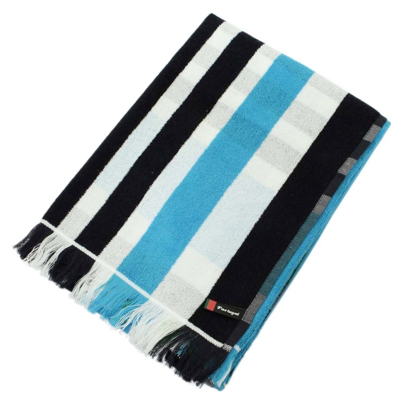 Bath Towel Porto White & Check Blue 60x120cm BE700301 Made in Portugal
