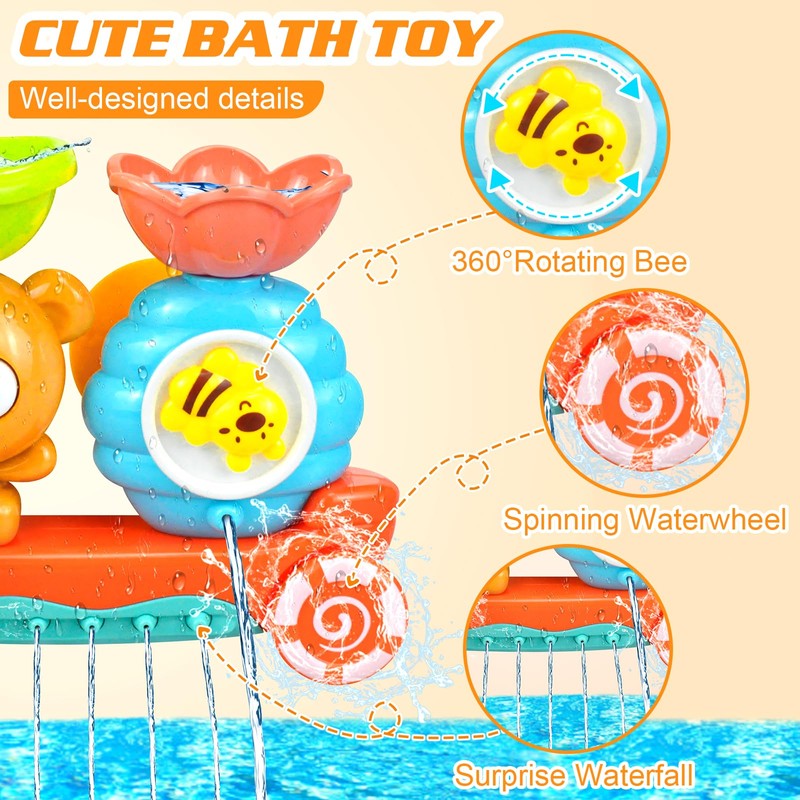 - SHOWER BATH TIME:each bath toy set includes 1*bath toy and 1*spoon. Using the spoon to pour water into the container on the top of the toy to create running water and waterfall effects, allowing your child to enjoy fun bath time.