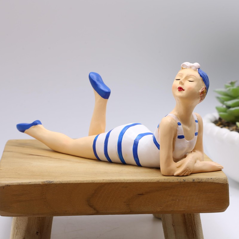 Bathing Lady Ornament Blue & White 15cm Seaside Beach Bathroom Gift Freestanding Figurine