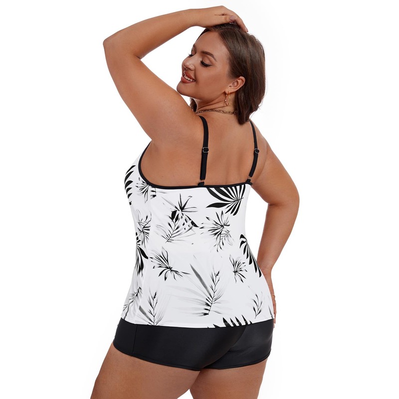 Bathing Suit for Women Plus Size,Women's Tankini Swimsuits Built in Bra Sleeveless Two Piece Swim Tops with Shorts Ladies SPF UPF 50+ Quick Dry Swimwear White-Base Black Leaf 4X