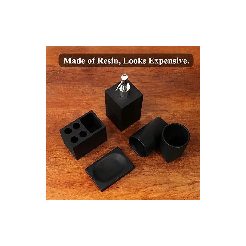 Bathroom Accessories Set, 5 Pcs Marble Look Bathroom Sets for Counter Top Black