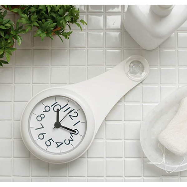 Bathroom Clock, Waterproof Clock, Wall Clock, with Suction Clock, Waterproof, Silent, For Bathroom, Kitchen, Bath, Home, Stylish (White)