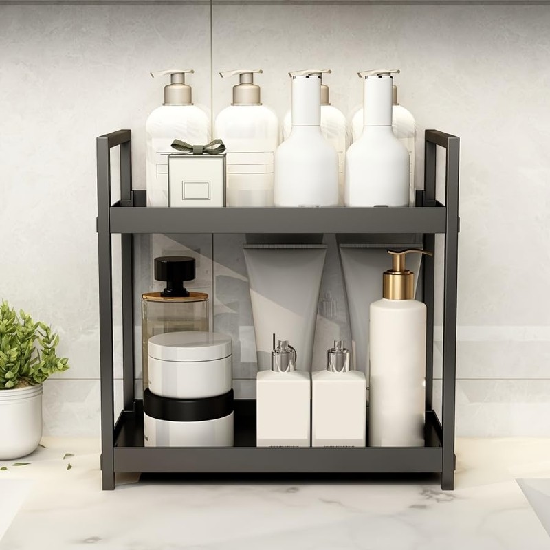 Bathroom Counter Organizer, Bathroom Organizers and Storage Countertop, 2 Tier Black Counter Shelf for Vanity Tables, Dresser, Makeup