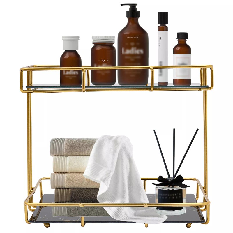 When you know how to live, you know how to use space effectively. This 2-tier bathroom countertop organizer is made of high-quality iron, glass, and adopts welding and baked painting technology, which is durable and long-lasting. The stylish and minimalist design allows it to blend in with a variety of decorative styles and opens up new storage space. It's a great little helper for your bathroom storage!
