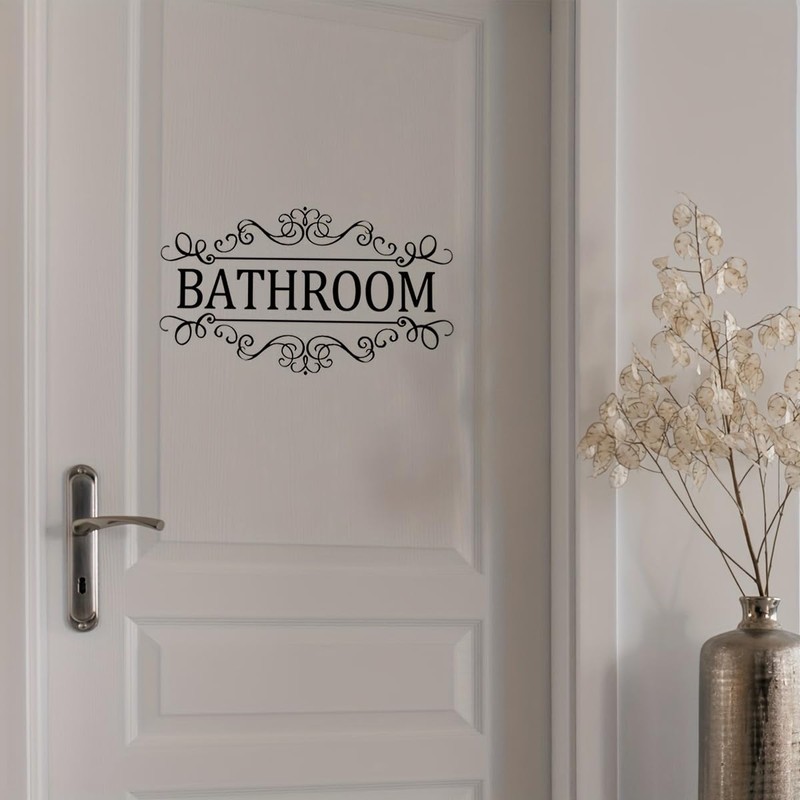 Bathroom Door Wall Sticker, Removable English Letter Signs, Decorative Decal for Bathroom, Laundry Room