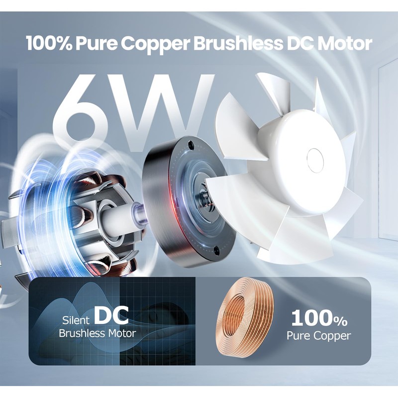 - 【100% Pure Copper Brushless DC Motor】 This exhaust fan is equipped with a 100% pure copper brushless DC motor, ensuring super energy-saving operation with a total input power of ≤8.5W, consuming only 0.2 kWh/24hrs and boasting a 30,000+ hrs lifespan. With low heat rise (≤20K), it offers excellent temp resistance & efficiency, making it an ideal choice for household ventilation fans that require long - term, reliable performance