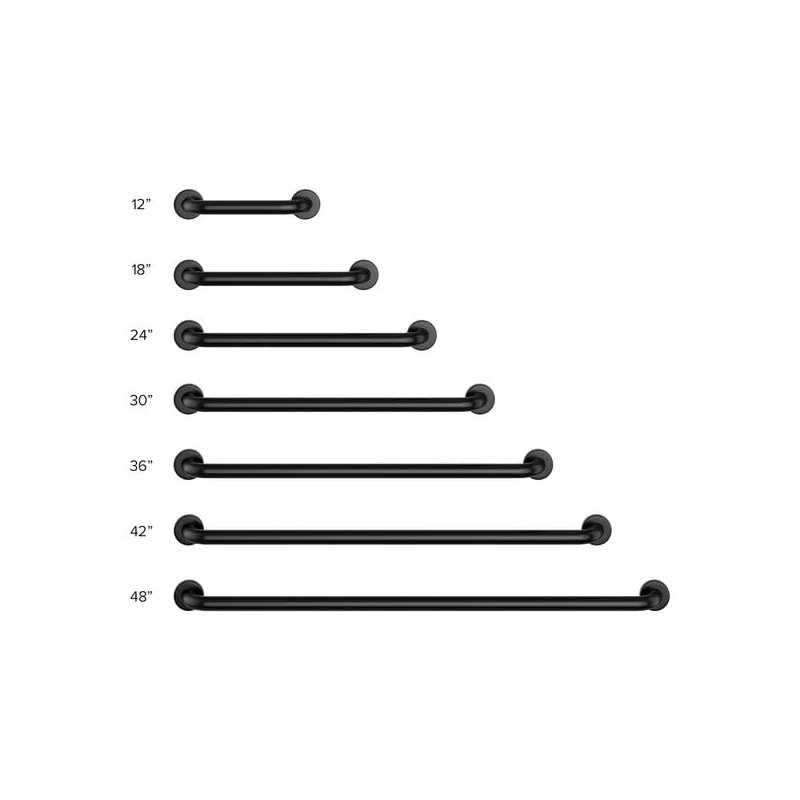 Enhance bathroom safety and accessibility with this premium 12-inch stainless steel grab bar. Crafted from durable 20-gauge Type 304 stainless steel with a sleek matte black finish, this grab bar combines functionality with modern style. The 1.5-inch diameter provides a comfortable, secure grip while supporting up to 250 pounds when properly installed. Perfect for both residential and commercial bathrooms, this ADA-compliant grab bar comes with mounting hardware for straightforward installation. The matte black finish not only adds a contemporary touch but also helps conceal fingerprints and maintains a clean appearance. This straight grab bar serves as an essential safety feature, helping prevent slips and falls while providing reliable support for users. The robust construction ensures long-lasting performance, while the easy-to-clean surface makes maintenance simple. Whether installed in a home bathroom, hotel, or public facility, this grab bar delivers both safety and style.
