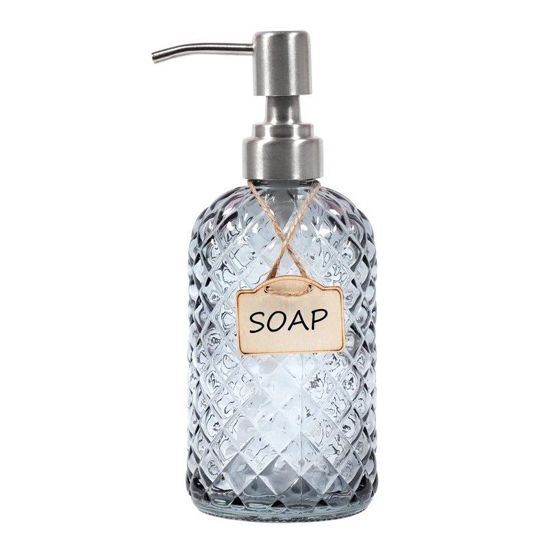 - Elegant Soap Dispenser - This grey glass Soap Dispenser are lovely bathroom & kitchen accessories addition,Added elegance to the bathroom & kitchen