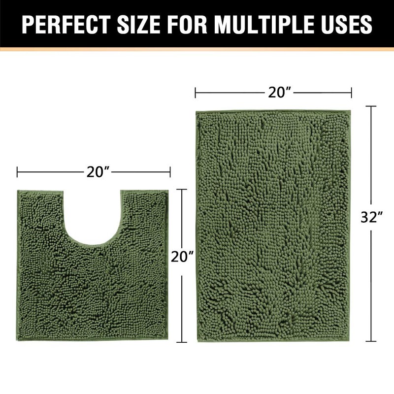 Bathroom Rugs Luxury Chenille Mat Set, Soft Plush Shower Rug + Toilet Mat, Microfiber Shaggy Carpet, Super Absorbent, Machine Washable (Curved Set, 32" x 20"/20" x 20", Loden)