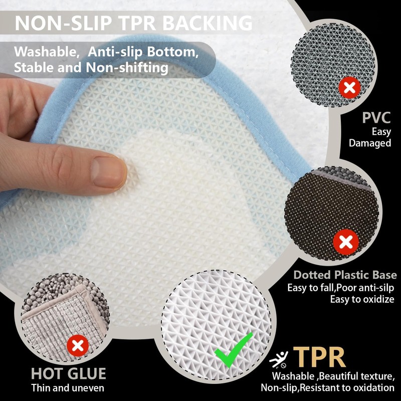 • Ultimate Absorption & Safe Bath Rugs: The underside of our irregular shaped microfiber soft blue runner rug is crafted from premium TPR material, preventing any unwanted movement and providing exceptional slip resistance. It significantly reduces the risk of slips and falls, enhancing bathroom safety.This shower rugs for bathroom is super absorbent, ensuring that your feet stay dry after a shower.