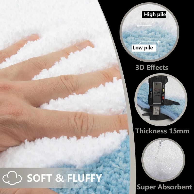 - Ultimate Absorption & Safe Bath Rugs: The underside of our irregular shaped microfiber soft blue runner rug is crafted from premium TPR material, preventing any unwanted movement and providing exceptional slip resistance. It significantly reduces the risk of slips and falls, enhancing bathroom safety.This shower rugs for bathroom is super absorbent, ensuring that your feet stay dry after a shower.
