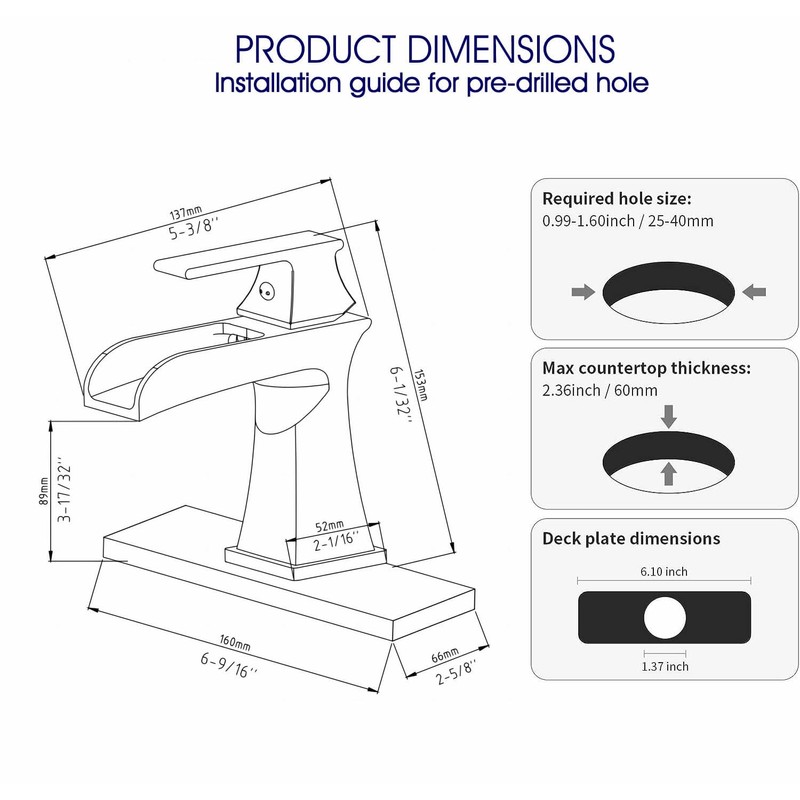 - Waterfall Style : The bathroom sink faucet is featured with waterfall design, which will reduce impulse force of the water and significantly save water for your daily life.