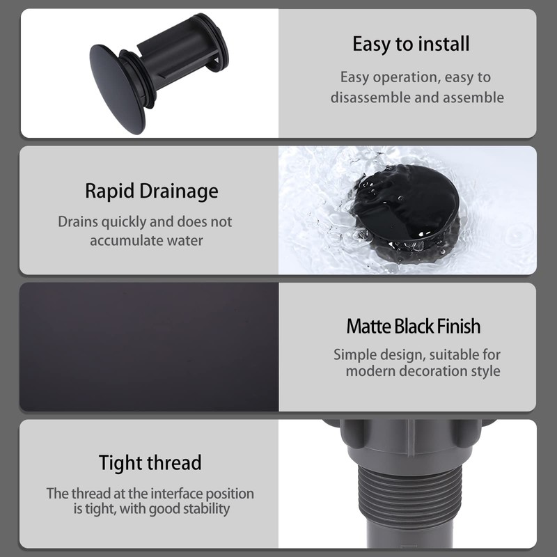 - 【Matte Black Finish】 It matte black finish gives this sink stopper a sophisticated look, making it an attractive addition to your powder room or a master bath.