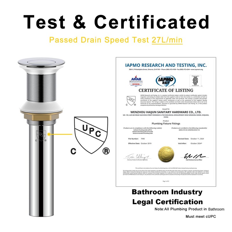 - 【Certification Passed】: This sink drain stopper have passed the cUPC certification,which is a serious US local certification that has strict requirement in term of product performance and product material, which ensures that the process of using pop up drain stopper with this certification is more safer for your home.