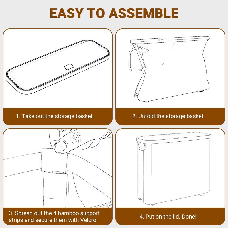 - Easy to Assemble and Clean: No complicated tools are required for assembly. Just unfold it and start using it right away. And when it gets dirty, the waterproof Oxford cloth can be easily wiped clean with a damp cloth, ensuring your storage basket always looks fresh and tidy