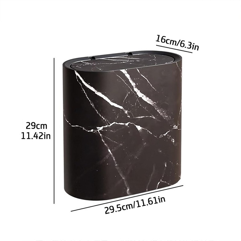 Bathroom Trashcans with Lids, Plastic Marble Wood Pattern Trash Can Small Garbage Bin with Lid for Bathroom Narrow Wastebasket Modern Waste Basket for Home Indoor Hotel (Plastic Black Pattern)