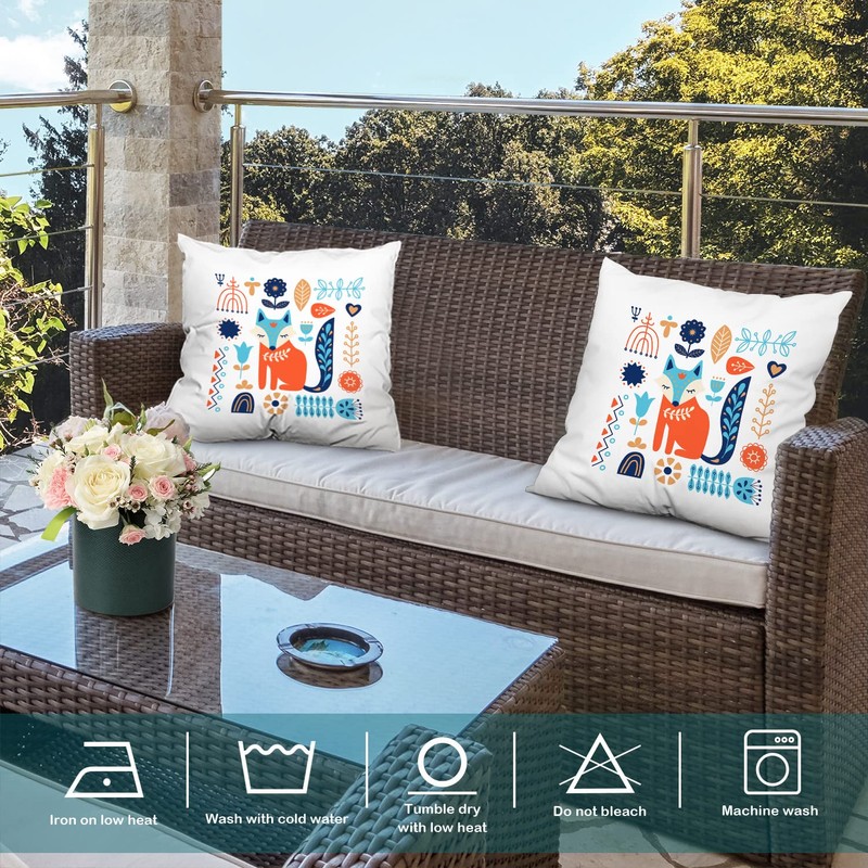 Batmerry Scandinavian Fox Decorative Pillow Covers, 20 x 20 Inch Swedish Folk Flowers Floral Pattern Double Sided Throw Pillow Covers Sofa Cushion Cover Square 20 Inches(Set of 2)