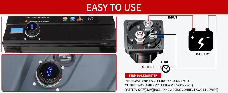 Battery Disconnect Power Switch with Digital Voltage Display,DC 5-60V