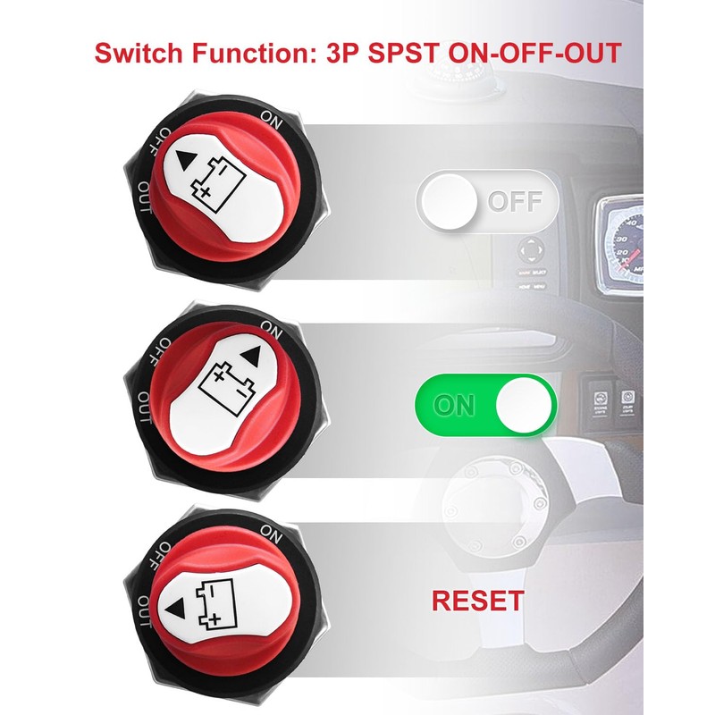 - Advanced Safety Features: On/Off/Out switch with a locking "Out" position to prevent accidental activation, providing full electrical isolation and protecting your battery and electrical systems from unauthorized use and short circuits