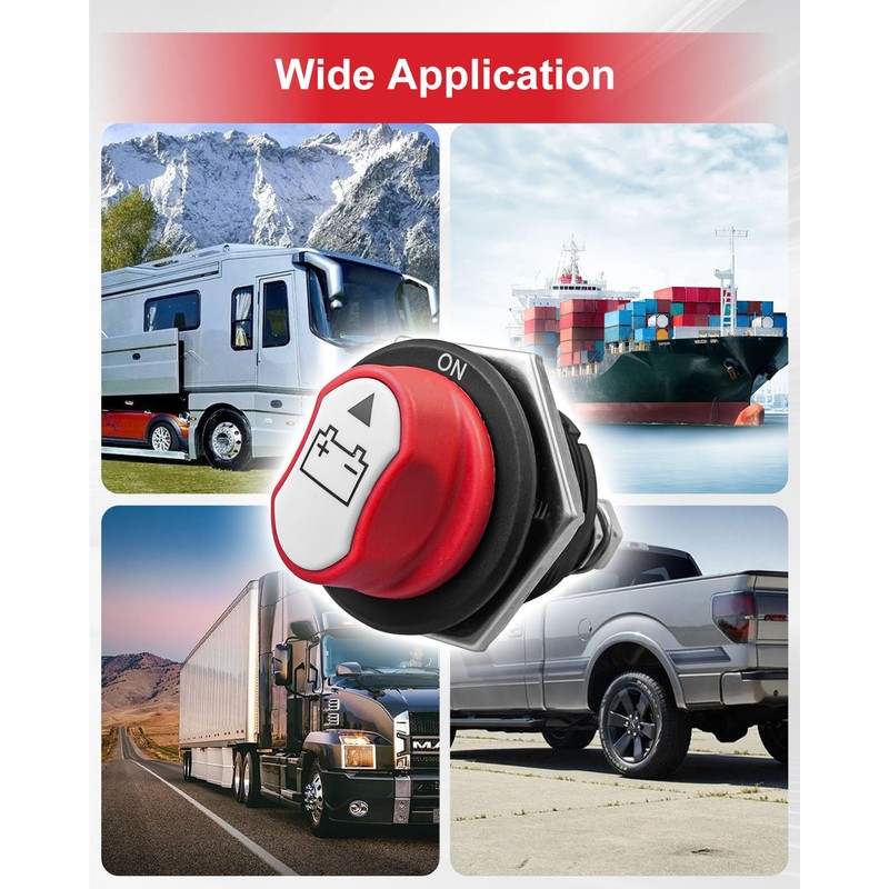 - Wide Application: Battery disconnect switch compatible with 12V-48V DC systems, perfect for cars, trucks, RVs, boats, trailers, ATVs, and UTVs, supporting a maximum voltage of 32V DC for versatile power applications