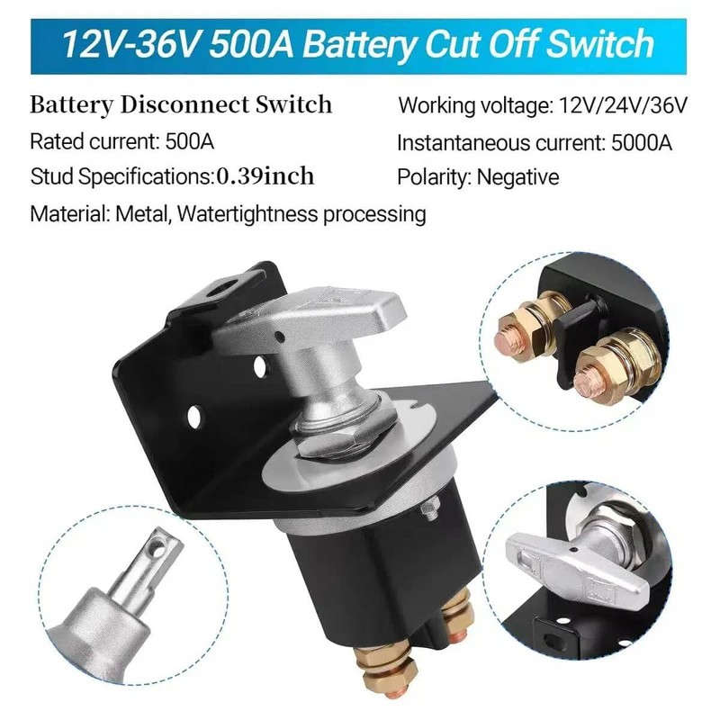 - [500A Battery Disconnect Switch] Rated current 500A, rated voltage 12V. A great switch to prevent battery drain when the equipment is not in use.