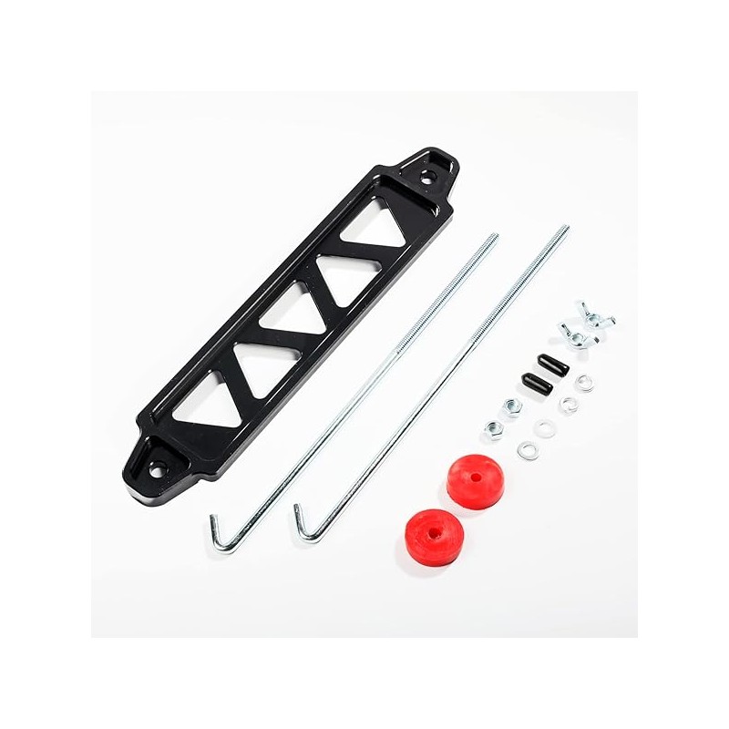 Battery Hold Down Bracket Holder, Car Battery Holder Kit with 10in J bolts,Aluminum Alloy Battery Tie Down Mount Bracket, Battery Tray for Car Battery Mount Bracket Hold Lock Accessories (Black)