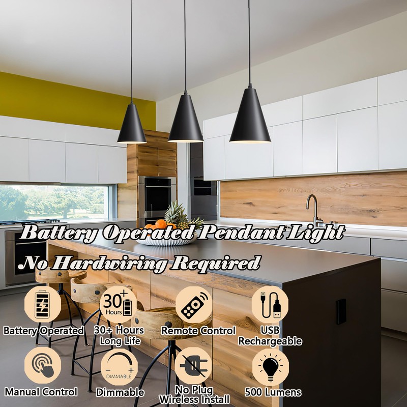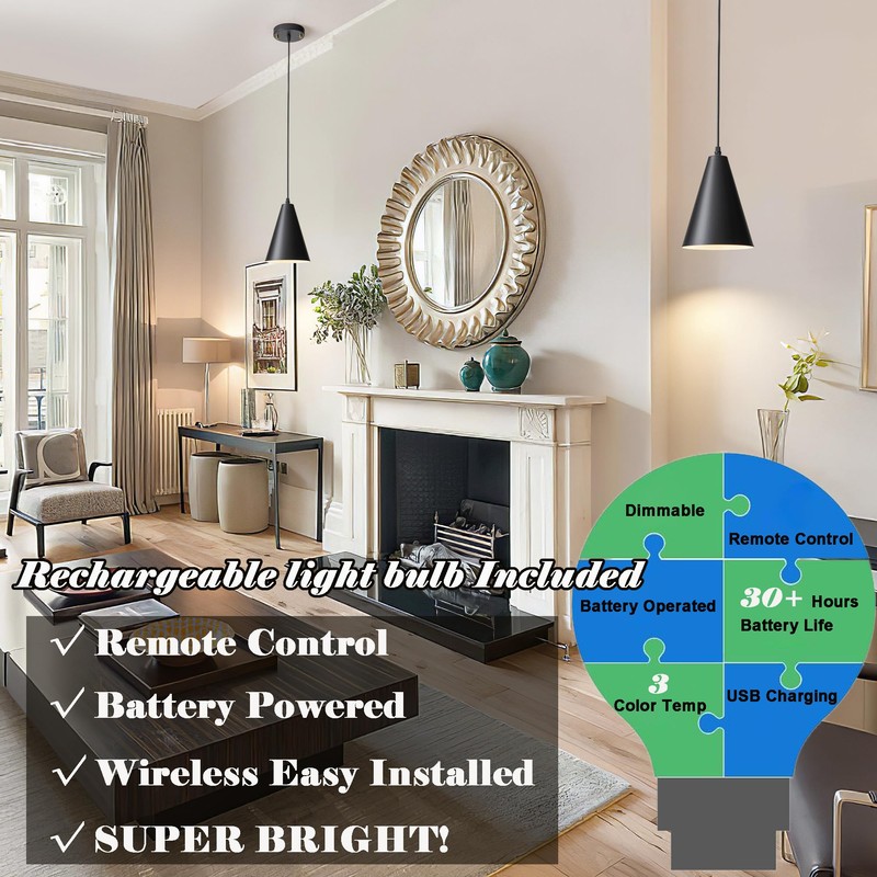 - Adjustable Hanging Lamp- The 500 lumens battery pendant light emit 3000K warm light, 4000K warm white light, 6000K white light.3 kinds of brightness are more versatile, can be used as both atmosphere light and reading light.New lighting points can be added at any time according to your needs, no need to worry about ruining your original home improvement. No Plug in pendant lighting means you don't need to clutter your ceiling with wires.