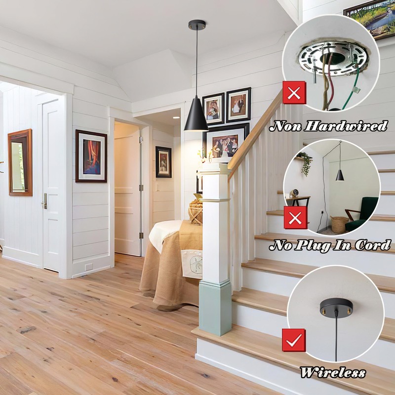 - Non Hardwired Installation- You can easily install the battery powered hanging light by yourself.Wireless installation means you don't need to hire an electrician.You can be a great installer yourself.All mounting accessories are included for quick installation.Please enjoy the fun of DIY!