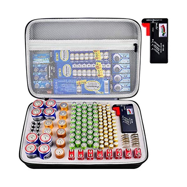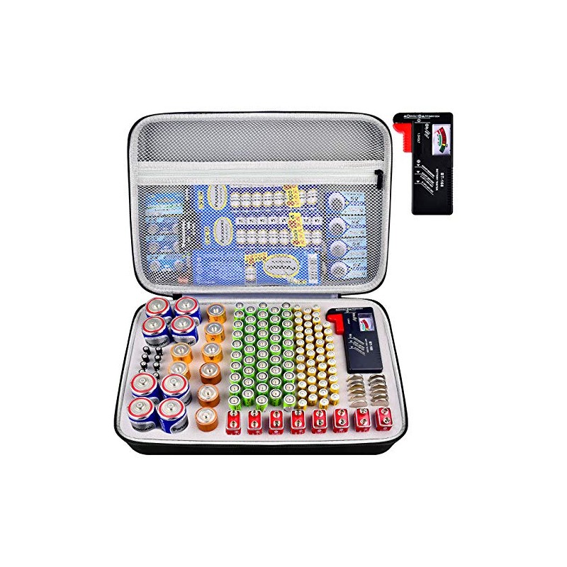Battery Organizer Storage Case with Tester, Battery Box Holder Garage Container Bag Fits for AA AAA AAAA 9V C D Lithium 3V(Not Includes Batteries)