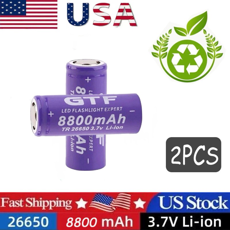 26650 Battery 8800mAh 3.7V Li-ion Rechargeable Cell Charger For Flashlight Lot