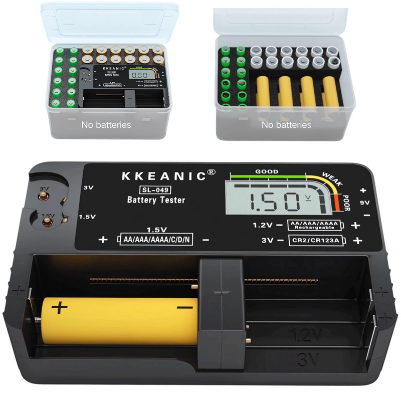 - Essential Battery Testing Tool - This reliable battery tester helps eliminate guesswork by providing precise voltage readings and power level indicators. The clear LCD display shows exact battery health status, letting you quickly identify which batteries need replacement.