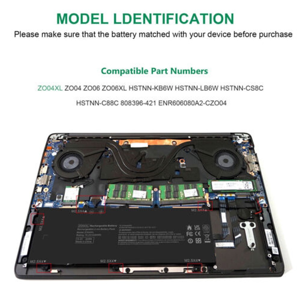 Compatible Models: For HP ZBook Studio G3 Mobile Workstation Series: For HP ZBook Studio G3(V8N26PA) , HP ZBook Studio G3(V8N22PA)  For HP ZBook Studio G3(V8N27PA) , HP ZBook Studio G3(V8N25PA)  For HP ZBook Studio G3(V8N24PA) , HP ZBook Studio G3(V8N23PA) For HP ZBook Studio G4 HSN-C02C Mobile Workstation Series: For HP ZBook Studio G4-1RR16EA , HP ZBook Studio G4-2WU02ES  For HP ZBook Studio G4-2ZC19ES , HP ZBook Studio G4-Y6K15EA  For HP ZBook Studio G4-Y6K17EA , HP ZBook Studio G4-Y6K33EA Compatible Part Numbers: ZO04XL, ZO04, ZO06, ZO06XL, 808396-421, 808450-001 HSTNN-KB6W, HSTNN-LB6W, HSTNN-CS8C HSTNN-C88C ENR606080A2-CZO04 808396-42