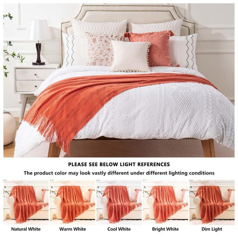 Battilo Home - Manta de punto suave y ligera con textura decorativa con borla para cama, sofá (salmón, 127 x 152 cm)